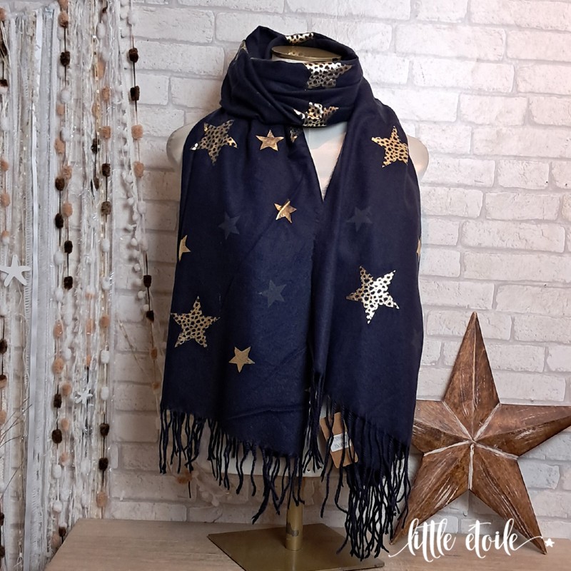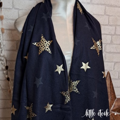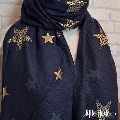 Très grande écharpe imprimée d'étoiles léopard & dorées !