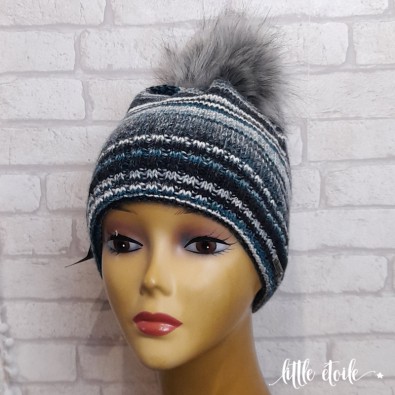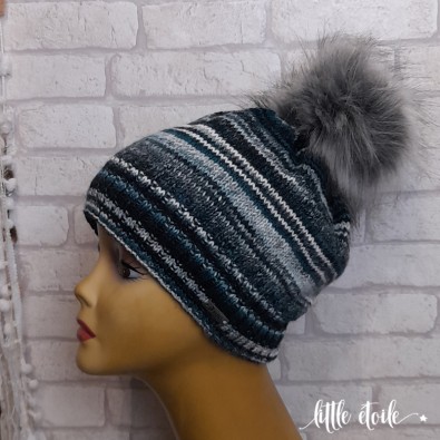 Très beau Bonnet rayé en laine alpaga, entièrement doublé en polaire !