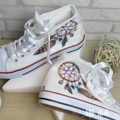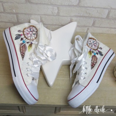 Baskets Attrape Rêves sur fond de dentelle esprit bohème.... !!