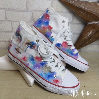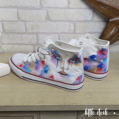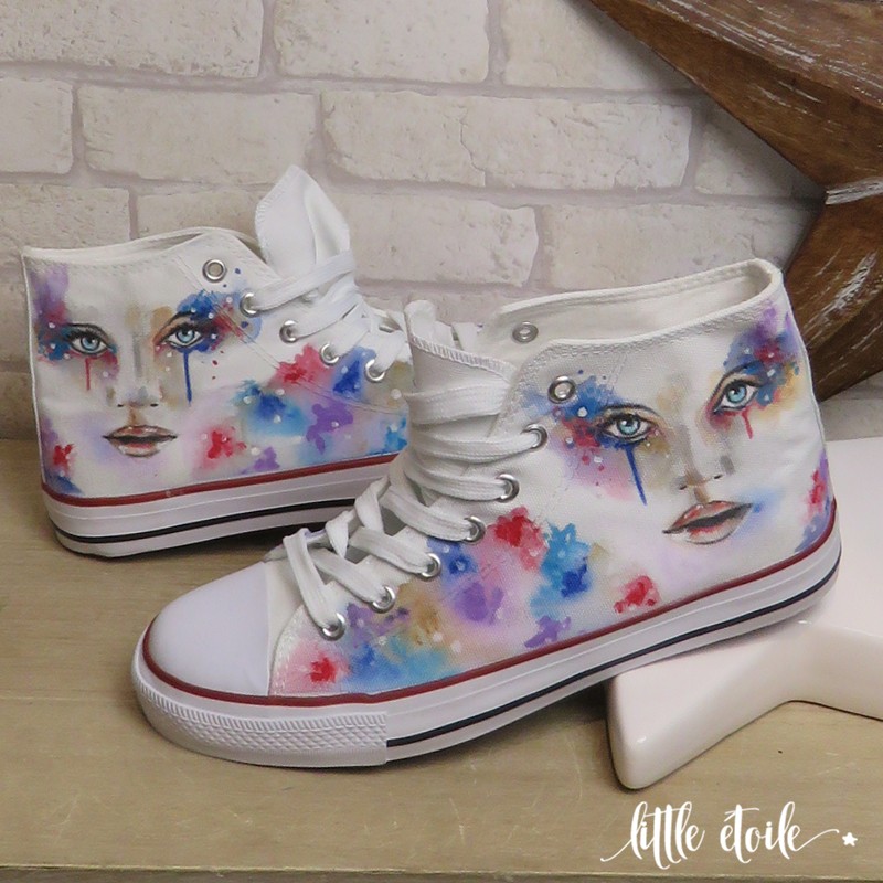 Baskets Visage Femme aux larmes multicolores.. !!