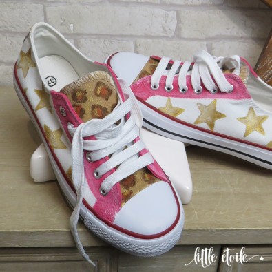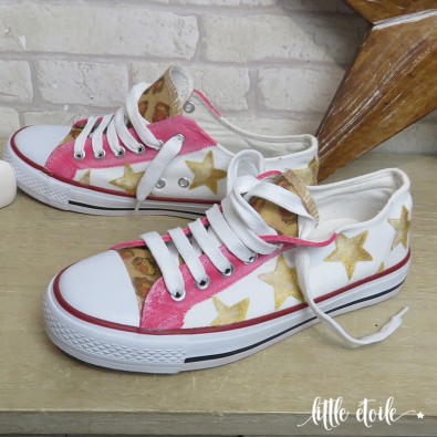 Baskets Rose used, Léopard cuivre irisé & Etoiles dorées..!