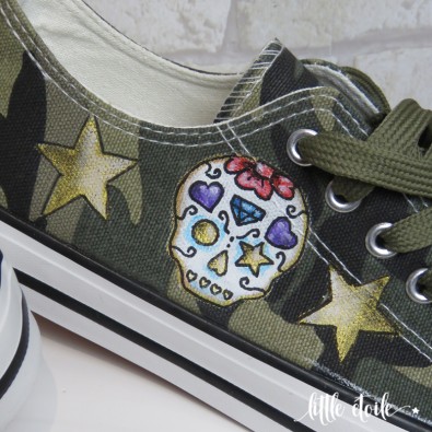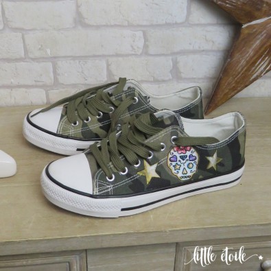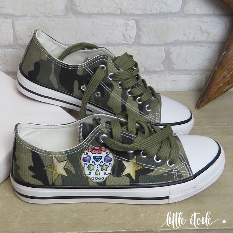 Baskets Esprit Rock camouflage Tête de mort mexicaine & étoiles dorées.!