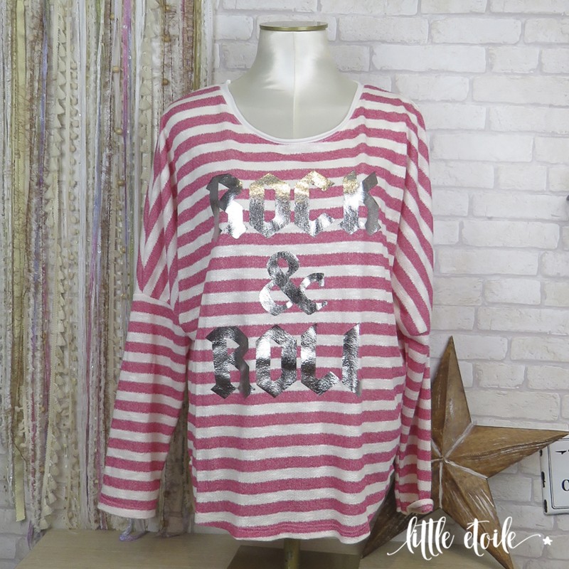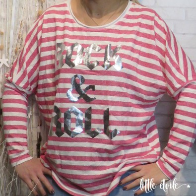 Très beau top à rayures marinière,  Rock & Roll argenté !