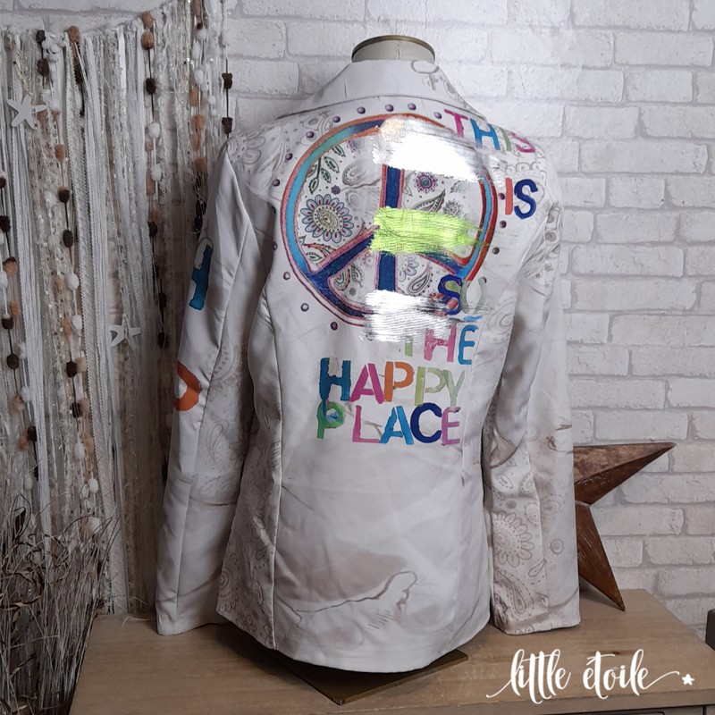 Sublime Veste imprimée Peace & Love aux détails argentés avec écritures