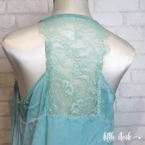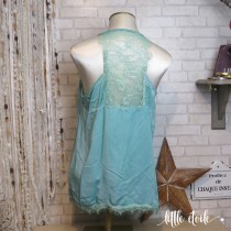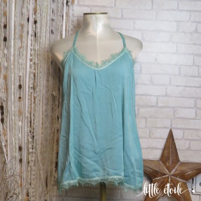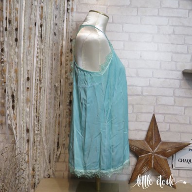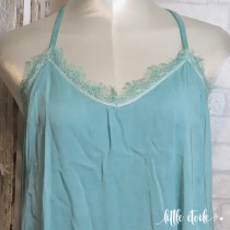 Top Caraco Débardeur tunique viscose, col V & dos dentelle, vert d'eau