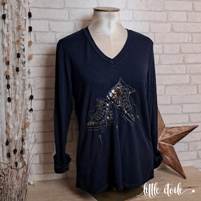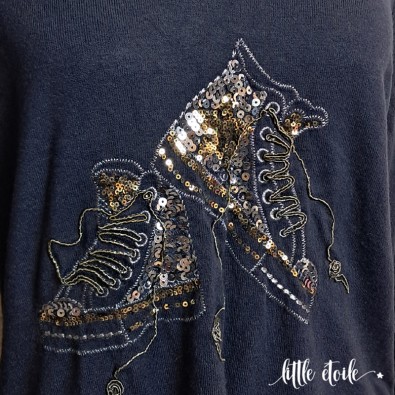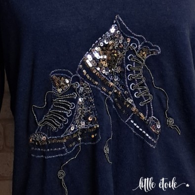 Superbe Pull col V en maille fine, Baskets brodées dorées aux sequins argentés