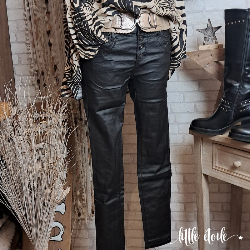 Jean Pantalon Place du Jour effet enduit, coupe près du corps, noir