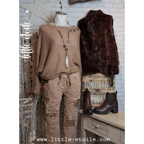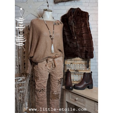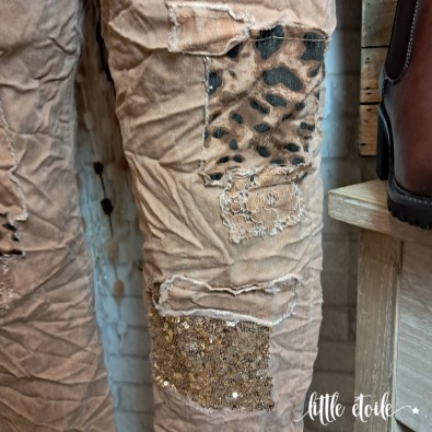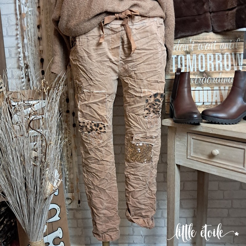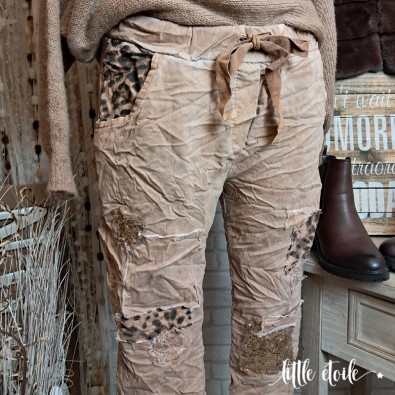 Pantalon pantajogg, Patchs léopard & sequins dorés, camel