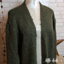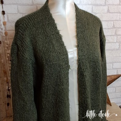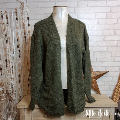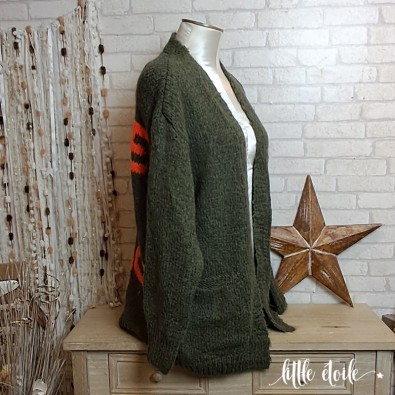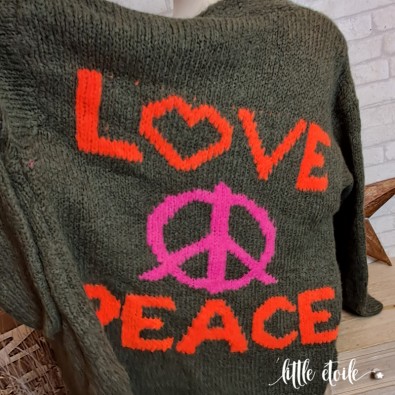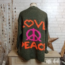 Gilet mi long en laine & viscose, motif Love & Peace, deux poches, kaki