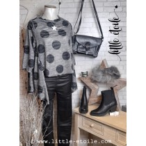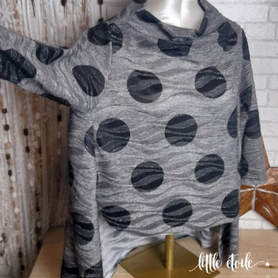 Top tunique façon poncho, à pois effet irisé aux fils argentés, gris anthracite