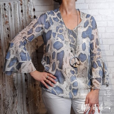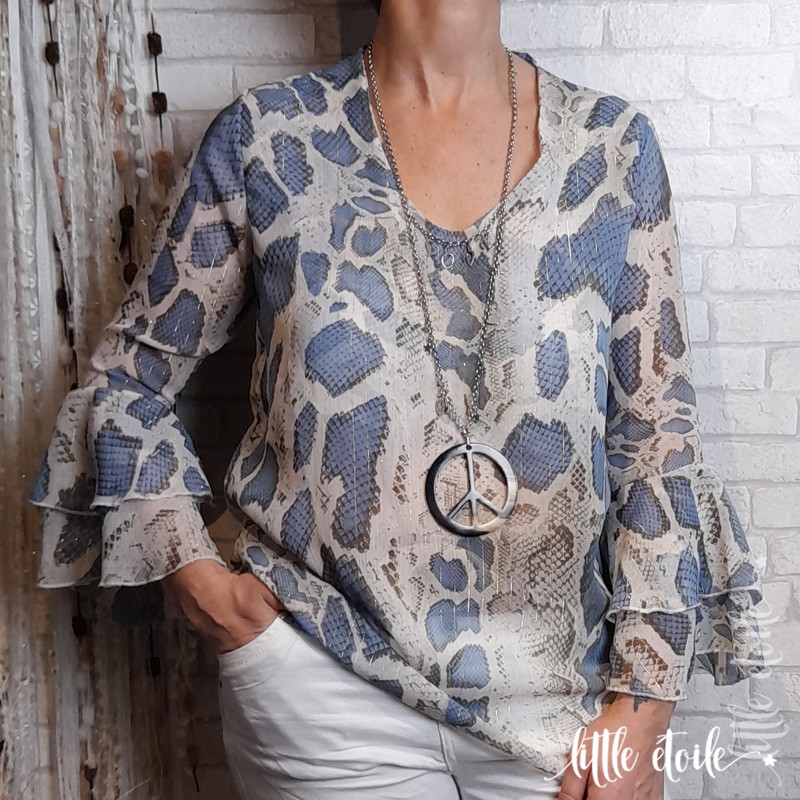 Sublime blouse ou tunique aux manches volants, imprimé python !