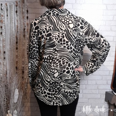 Chemise en voile, imprimé zèbre & léopard, noir
