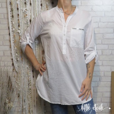 Légèrement transparent, on peut la porter avec un débardeur blanc dessous
