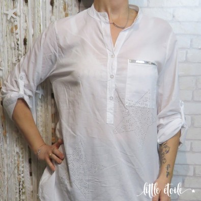 Poche avec bande sequins argent, et deux grandes étoiles en mini strass argent