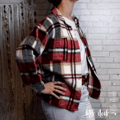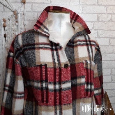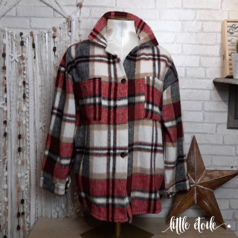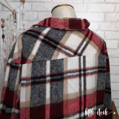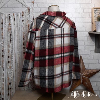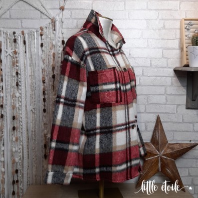 Veste ou surchemise à carreaux Tartan, ultra douce, deux poches poitrine, bordeaux
