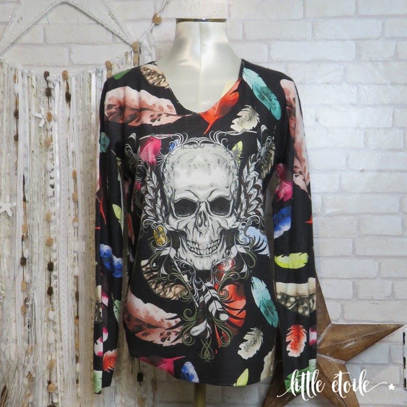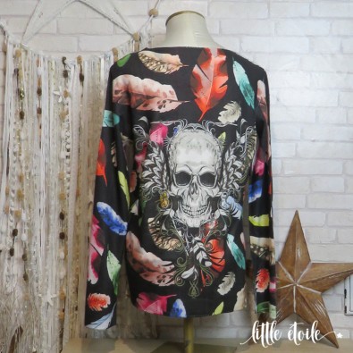 Sublime Pull oversize doux, imprimé tête de mort & plumes !
