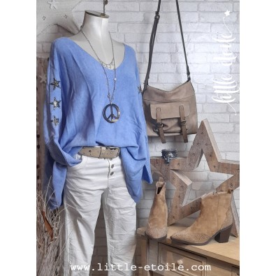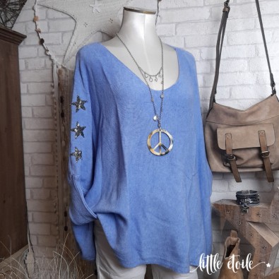 Sublime pull oversize en viscose fine & ultra douce, aux manches ajustées avec étoiles !