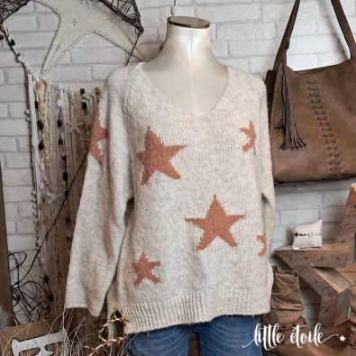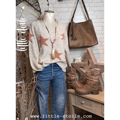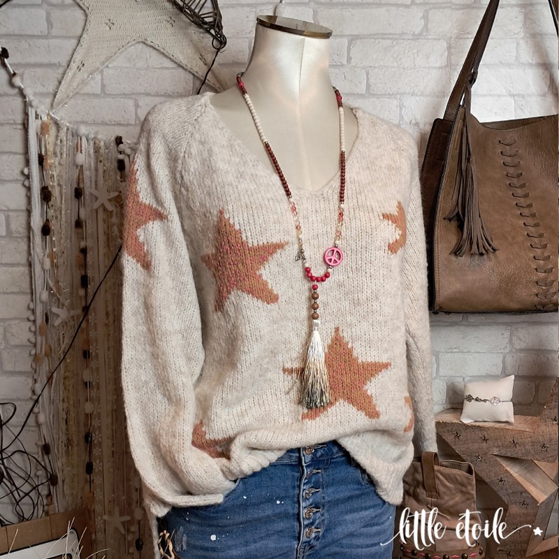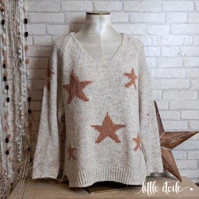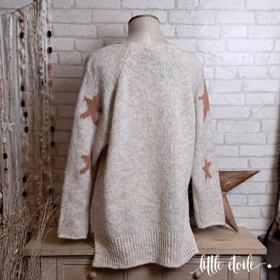 Pull en maille doudou ultra douce, imprimé d'étoiles camel !