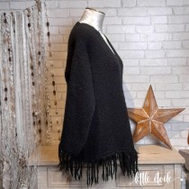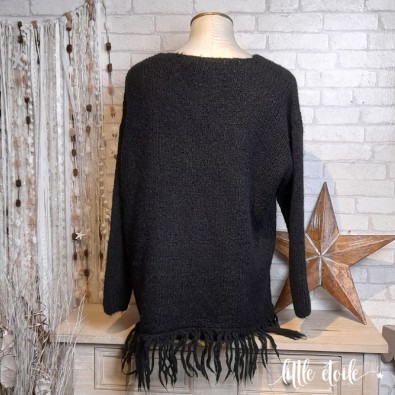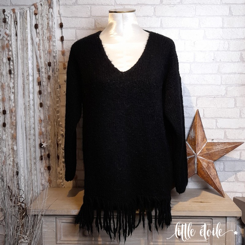 Pull col V en maille, ultra doux, bas franges