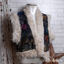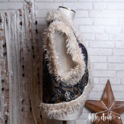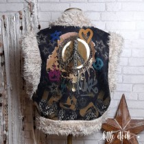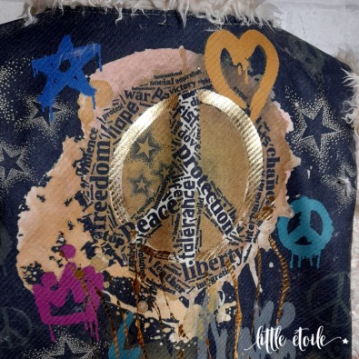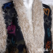 Sublime veste sans manches ou gilet fourrure au dos Peace & Love, inscriptions, coeurs, étoiles & détails dorés